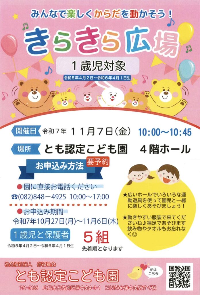 とも認定こども園は、広島市安佐南区伴中央4丁目にある幼保連携型認定こども園です。