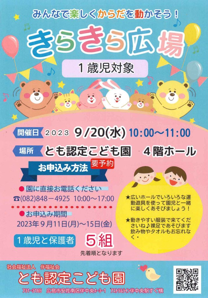 1歳児対象「きらきら広場」のご案内(終了しました)