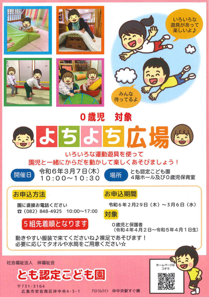 ・0歳児親子様を対象とした「運動あそび」を地域の皆様へご案内いたします。