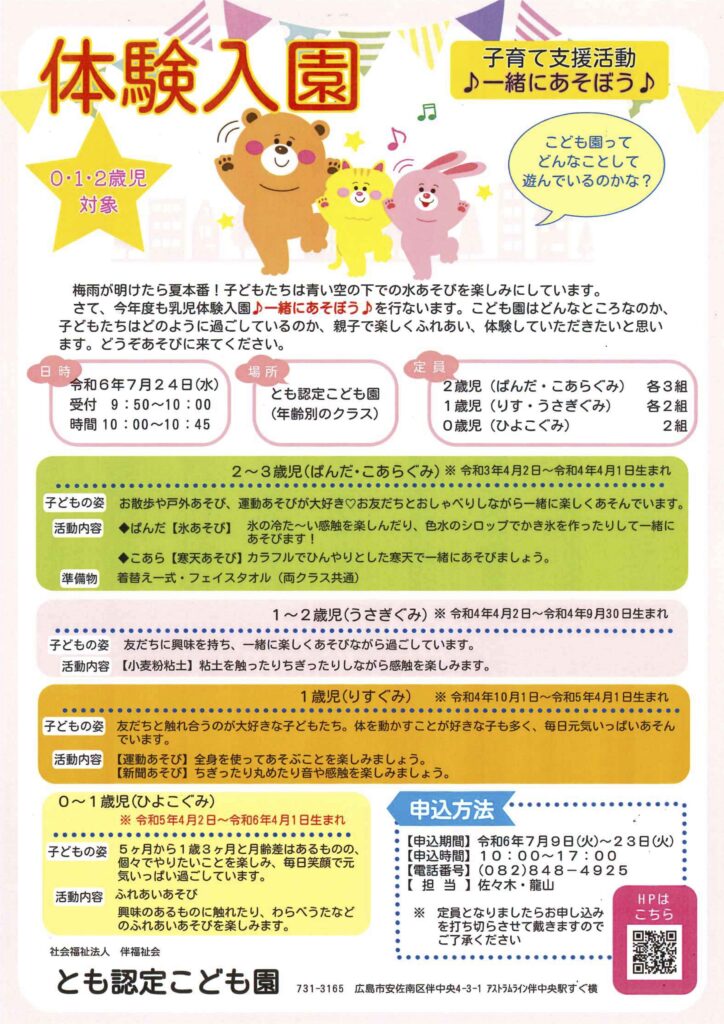 乳児体験入園のご案内(令和6年度 前期)(終了しました)