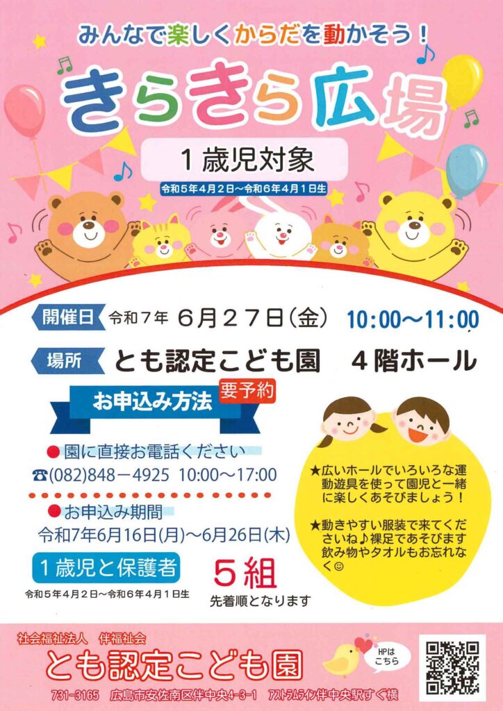 1歳児対象「きらきら広場」のご案内(終了しました)
