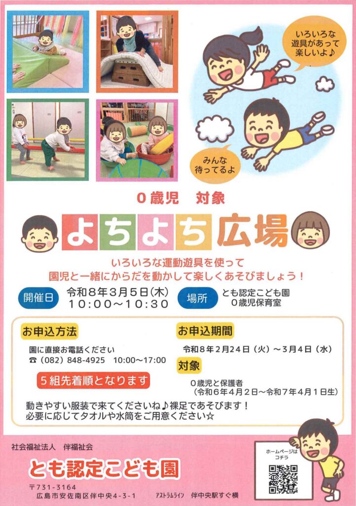 令和8年3月5日(木)10時開催!「ゆったりとした畳の部屋で赤ちゃんたちが遊べます!」